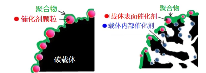 圖3. Mirai-1和Mirai-2催化層內三相界面示意圖(Toyota Technical Review 2021, 66, 22)